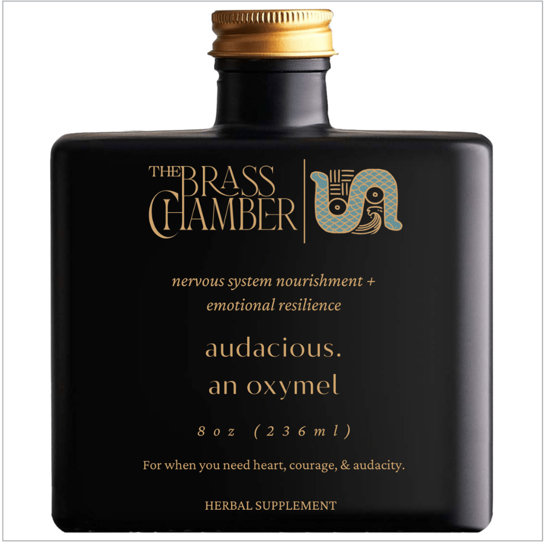 Liquid boldness. audacious is a catalyst blend that feeds your fire and clears your path. With herbs for circulation, creativity, and confidence, this oxymel is perfect for public speaking, passion projects, or whenever your courage needs a push.