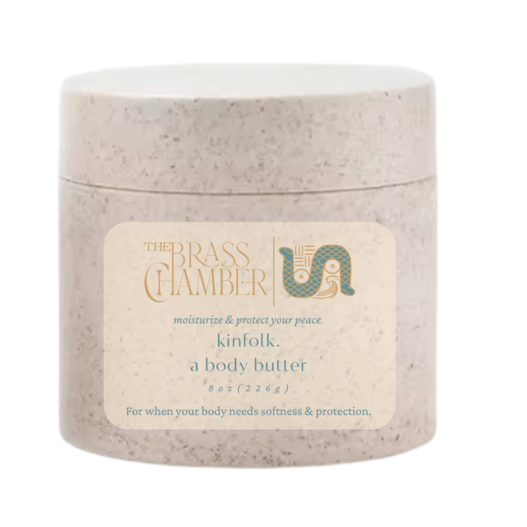 Diaspora softness in a jar. Skinfolk is a lush butter infused with herbs that calm the nerves, nourish the skin, and protect the energy field. This is everyday restoration for sensitive souls and overworked systems—crafted to remember where you come from and soften what the world hardens.