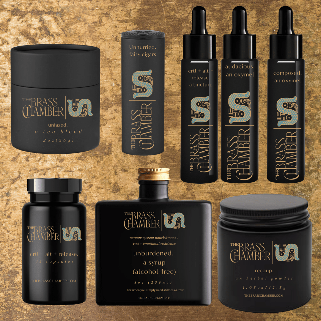 These aren’t shelf-fillers or fast-fashion wellness goods. Remedies at The Brass Chamber move with the moon—crafted in rhythm, small-batch, and made-to-order.